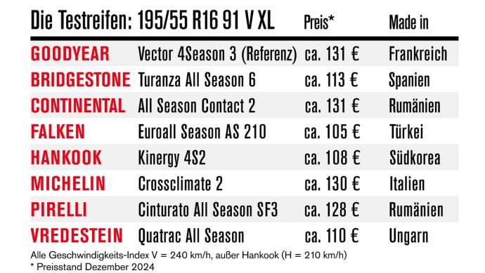 Ganzjahresreifen-Test 2025 - alle Wertungen, alle Ergebnisse