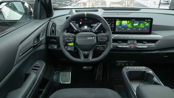 Im Innenraum prägen Halbschalen-Sportsitze mit Bezügen in Leder- und Velourslederoptik sowie auffällige Neonakzente das Ambiente. Die vorderen „Premium-Relaxation-Sitze“ sind elektrisch einstellbar und belüftet, der Fahrersitz verfügt zusätzlich über eine Massagefunktion. Zum Serienumfang gehören außerdem Drei-Zonen-Klimaautomatik, Harman/Kardon-Premium-Soundsystem, elektrische Heckklappe, Wärmepumpe, die V2L-Funktion zum Betrieb externer 230-Volt-Geräte sowie die Hardware-Vorbereitung für V2H- und V2G-Anwendungen. Head-up-Display, Fingerabdruckerkennung und ein umfangreiches Assistenzpaket runden die Ausstattung ab.