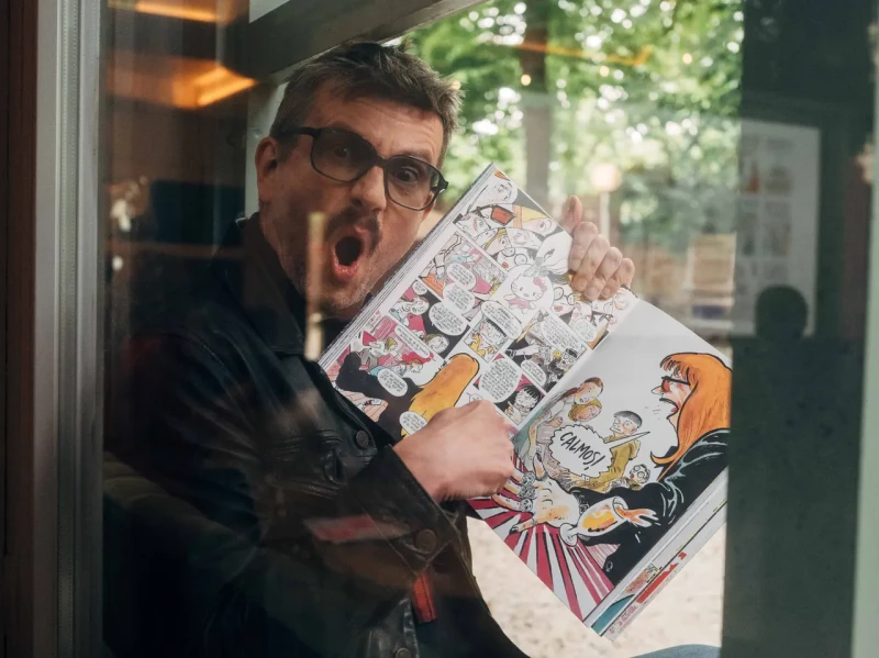 Er trägt eine Lederhose, wie es üblich ist im München der 1930er-Jahre, und wird von Leuten umgeben, die andere Bilder betrachten. Plötzlich wird eine Sprechblase sichtbar, in der steht, dass sich der Junge den «Schund» nicht länger anschauen und stattdessen in die Ausstellung über arische Kunst im Haus gegenüber mitkommen soll.