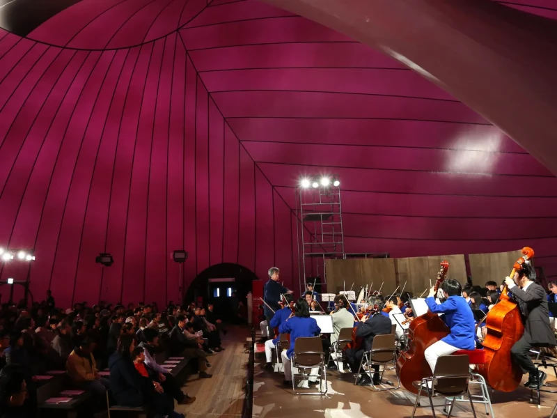 Entwickelt haben das aufblasbare Gebilde der britische Künstler Anish Kapoor und der japanische Architekt Arata Isozaki. Erstmals aufgestellt wurde es 2013 in Matsushima an der nordjapanischen Pazifikküste. Drei weitere Standorte innerhalb des Landes folgten. Es gab Auftritte von Big Bands oder Kammermusik-Ensembles zu hören.