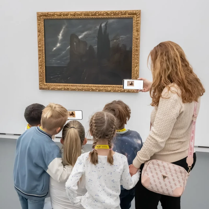 Nur wenige Schritte entfernt hängt das Bild «Ruine am Meer» von Arnold Böcklin. Die düstere Nachtstimmung des Bildes hat drei Drittklässler inspiriert: «Wir wollten es noch gruseliger machen!»