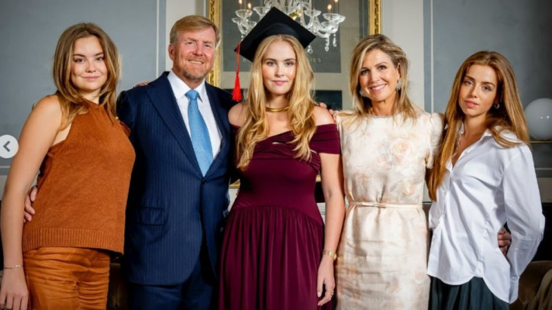 "Ein gesegnetes Weihnachten und ein gesundes und erfolgreiches 2026", wünschen König Willem-Alexander (58), Königin Máxima (54) und ihre drei Töchter. Das Foto zeigt Prinzessin Amalia (22) mit ihren Eltern und mit ihren jüngeren Schwestern Prinzessin Alexia (20) und Prinzessin Ariane (18) an einem besonderen Tag. Das Familienfoto entstand bei der Abschlussfeier von Amalia an der Universität Amsterdam.