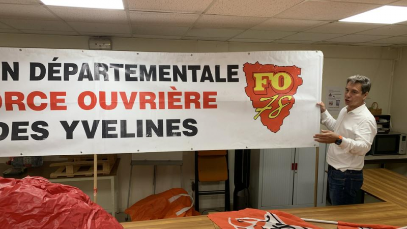 Im Keller der Geschäftsstelle der Gewerkschaft Force Ouvrière in Versailles: Auf den Tischen liegt das Material für die Demo schon bereit - weiße Streikwesten, Fähnchen mit Gewerkschaftslogo, Masken gegen Tränengas, der Lautsprecher für die Durchsagen. Claude Bacca, Generalsekretär der FO im Départment Yvelines, und sein Schatzmeister prüfen den großen roten Ballon, der über den Demonstranten schweben soll.
