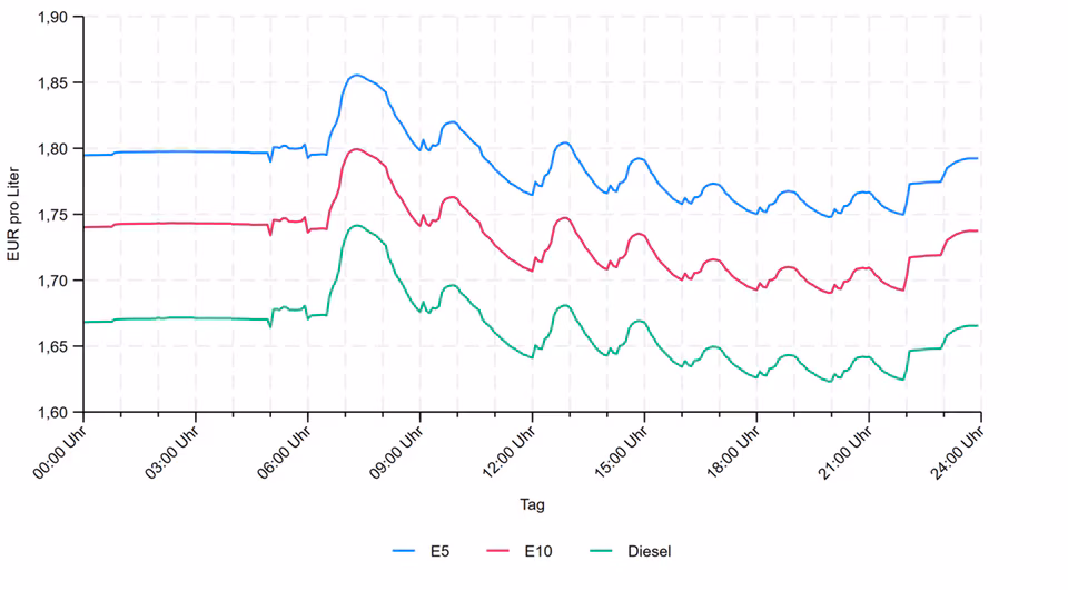 Verlauf des Benzinpreises über den Tag: Niemals morgens tanken!