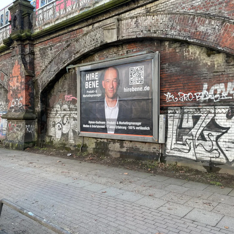 Nach 70 erfolglosen Bewerbungen ging der Marketingmanager neue Wege, um Arbeitgeber auf sich aufmerksam zu machen. Grasmanns Eckdaten in Kürze: Jahrgang 1979, abgeschlossenes BWL-Studium und langjährige Erfahrungen als Marketing- und Produktmanager in der Unterhaltungsbranche. Daher weiß er, wie er auf sich aufmerksam machen kann: Er startete Anfang dieses Jahres eine Plakataktion und blickte in seiner Heimatstadt an neun Standorten im XXL-Format zehn Tage von Werbeflächen auf die vorbeilaufenden Menschen.
