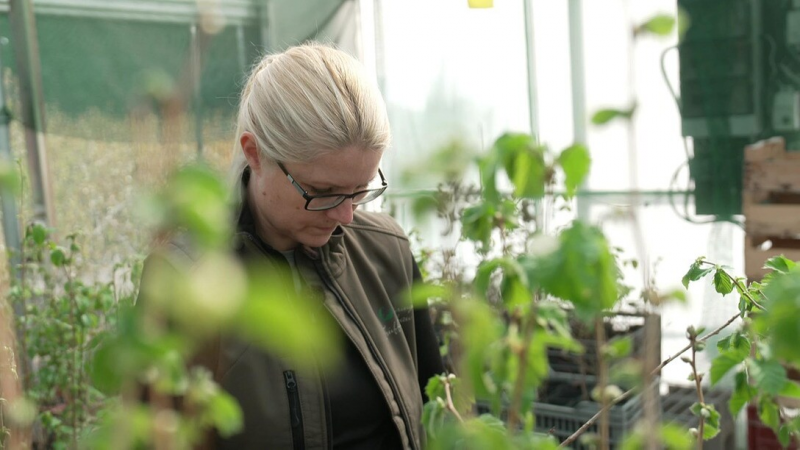 Pilzzüchterin Anja Kolbe-Nelde im Gewächshaus zwischen Jungbäumen, an deren Wurzeln Trüffel wachsen.Bildrechte: MITTELDEUTSCHER RUNDFUNKAls sie vor rund zehn Jahren ihre Pilzfarm gründete, sei es aber zunächst sehr schwierig gewesen, erinnert sie sich. "Viele haben hinter der Tür gemunkelt: 'Was macht denn die da mit Pilzen? Das funktioniert sowieso nicht. Sowas gibt es doch hier gar nicht.'" Dass sie dafür ihren Job als Bankkauffrau aufgab, konnten auch Familienangehörige zunächst nicht nachvollziehen. Skepsis sei ihr aber weniger als Frau begegnet, sondern vor allem wegen der Nische Pilz.