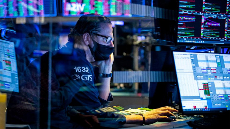Börsenhändler an der New Yorker Börse während der Coronakrise am 28.10.2020.